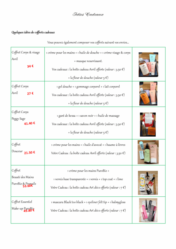 Retrouvez également des idées de coffrets cadeaux à l’institut. Vous pouvez opter pour un coffret tout prêt ou le composer vous même. Je vous offre à cette occasion la boîte du coffret* et une fleur de douche*