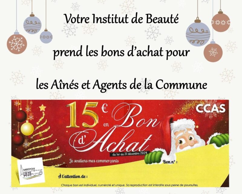 A noter qu’en cette période spéciale de Fêtes, les horaires de votre institut de beauté sont changés à partir du 15 décembre.