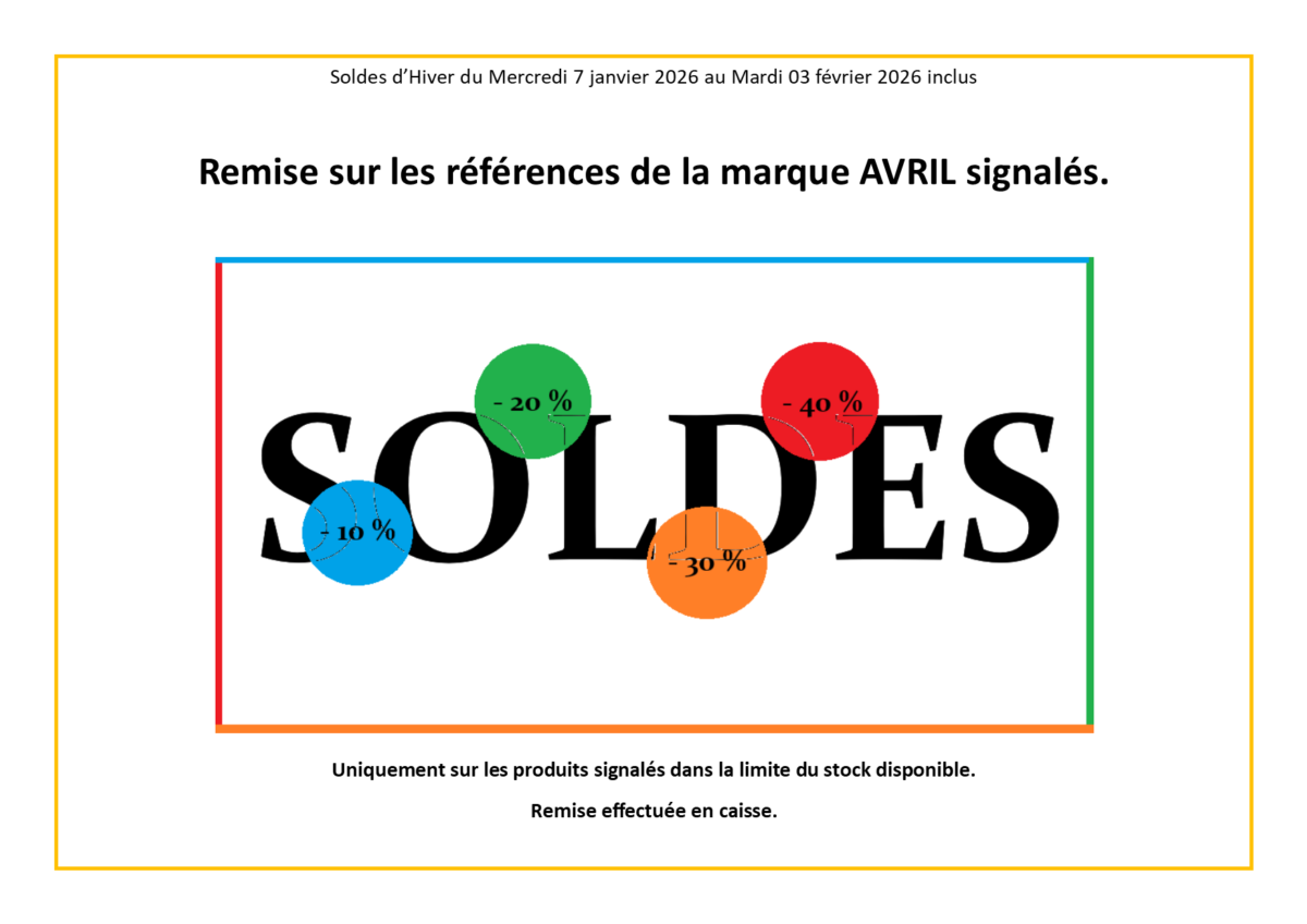 L’heure des Soldes d’hiver a sonné ! Je vous laisse découvrir à l’institut, les remises faites sur quelques références de la marque Avril.